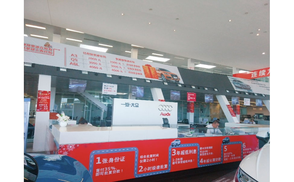 德奥鑫超越了传统的高档汽车品牌4S店模式,是按照奥迪全球最新统一标准设计建成的集品牌体验、车型展示、新车销售、售后服务于一体的城市多功能展厅。4S店总建筑面积近9000平方米,由德国建筑专家全权设计,施工建设严格遵守奥迪标准,每个细节都突出了奥迪品牌的尊贵。近6000平方米的维修车间,售后维修工位高达50余个,此外,还拥有充裕的停车位、舒适宽敞的客户休息室,极力为您营造高尚、典雅的选车环境和售后尊享服务.
